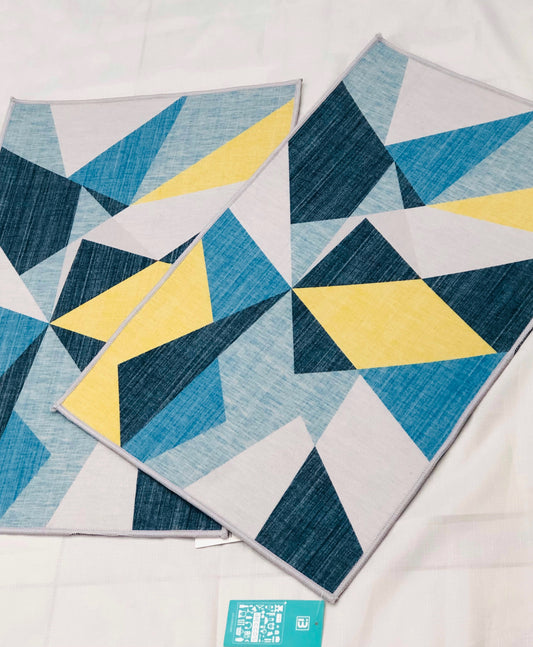 Blue and yellow decorated mat