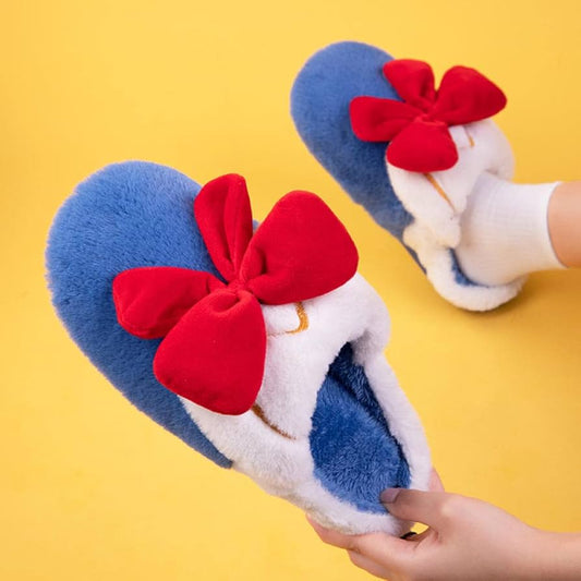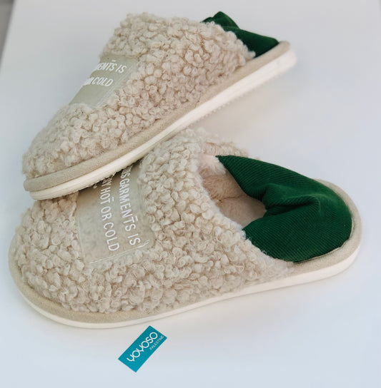 A winter footwear lined with green fur