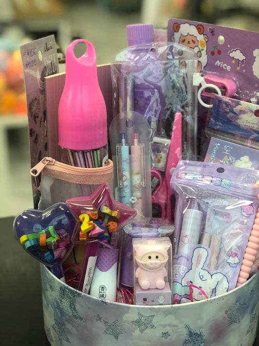 Pink and purple stationery package
