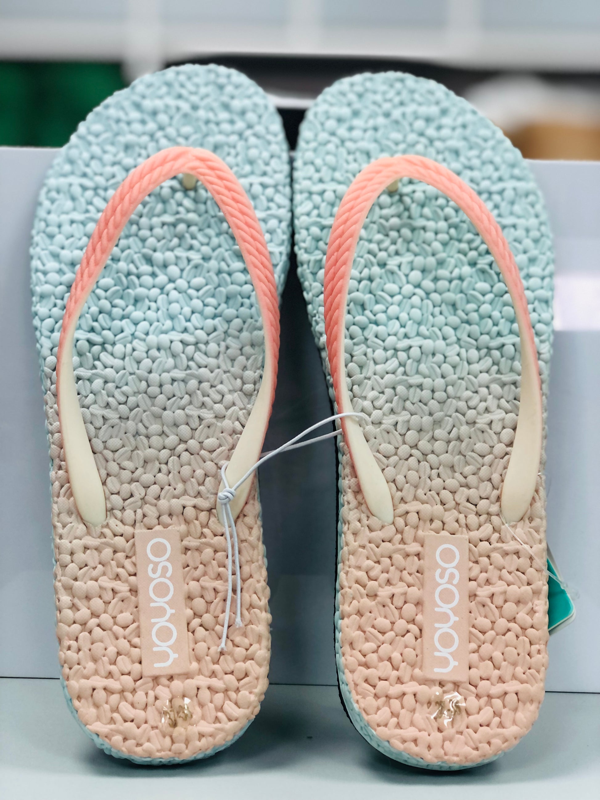 Blue and apricot wavy toe sandal