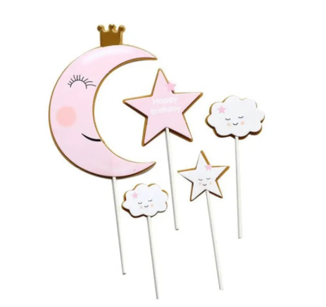 زينة قمر ونجوم ورق للكيكة